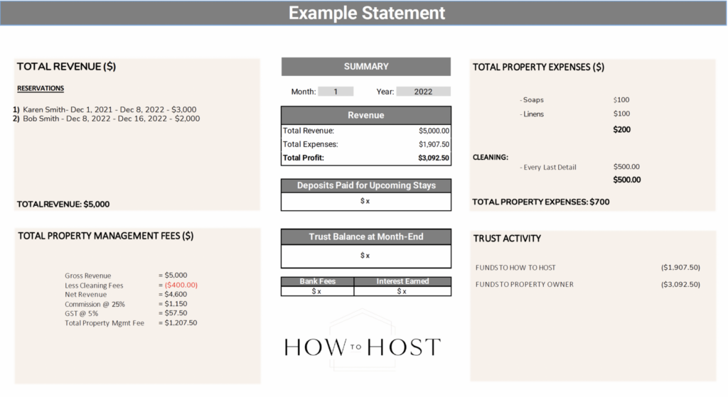 We work with professional bookkeeping and accounting firms. You will receive detailed and transparent monthly income statements including the following information: